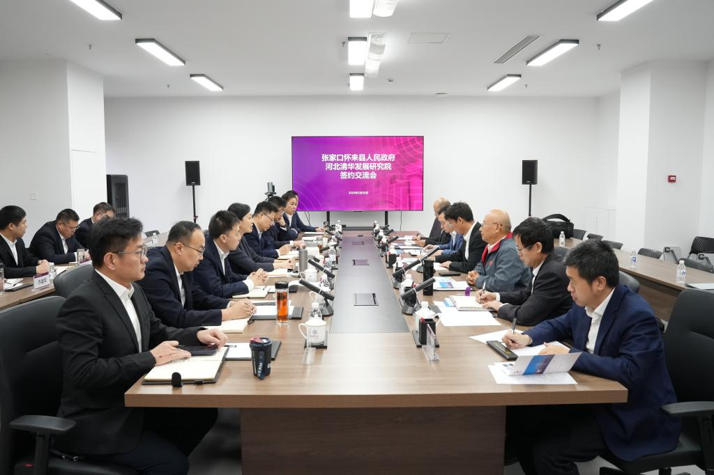 2月28日,河北清华发展研究院(下称“研究院”)与怀来县人民政府在研究院石家庄总部举行签约仪式。研究院院长甄树宁,怀来县委书记张琪、县长王学东出席仪式。